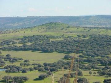 El árbol simbólico de estas tierras es la encina, elemento fundamental de la dehesa, ecosistema más representativo de Logrosán y de toda Extremadura. En los lugares de mayor altitud la encina da paso a alcornoques y robles.