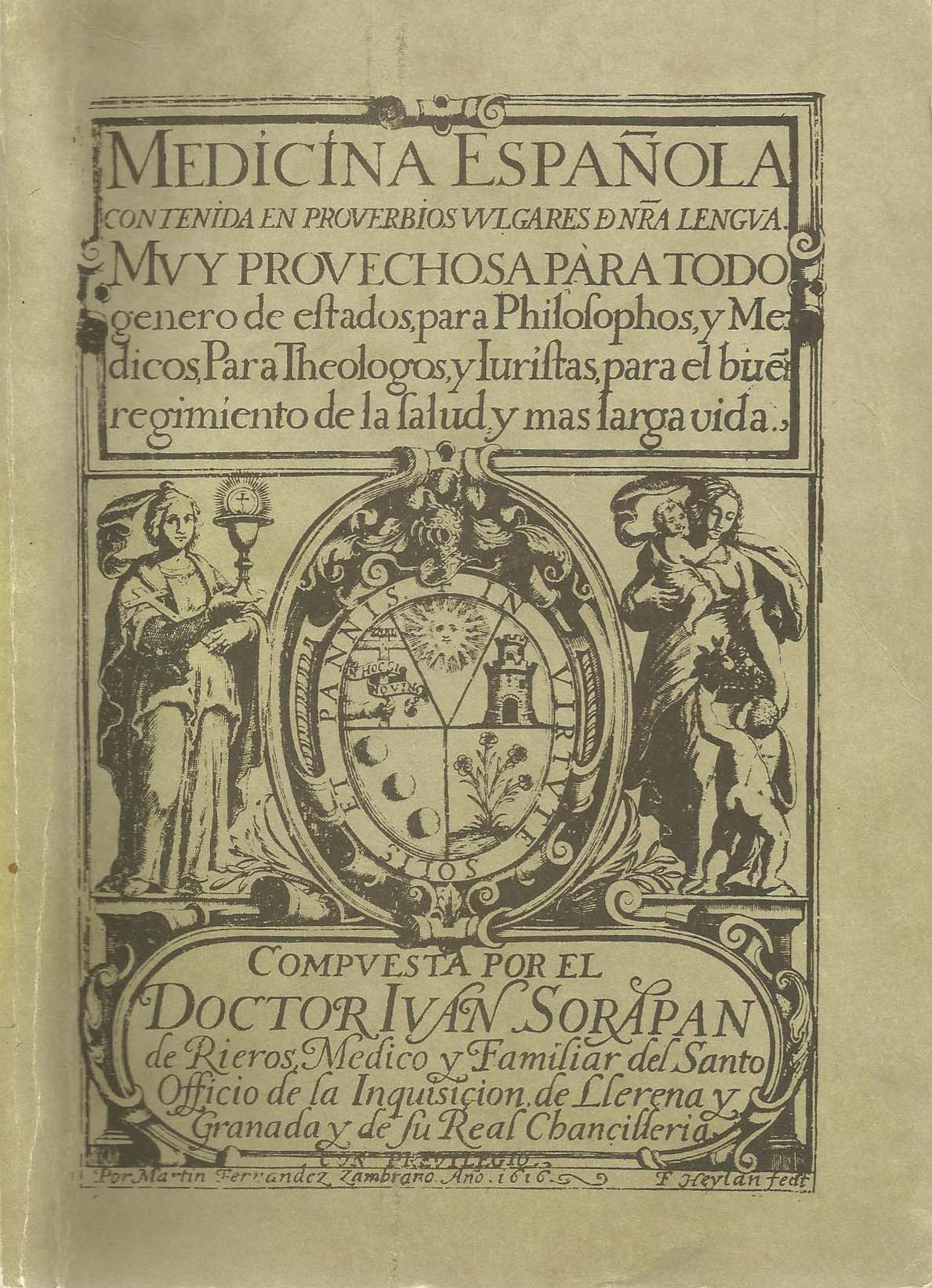 El lema de su escudo reza así: In virtute solis et panis (En virtud del sol y del pan, es decir, gracias a la luz y al alimento es posible la vida Así es como vivimos, pues lo dos son indispensables. Buen lema para quien había de ser uno de los médicos más conocidos de su tiempo y autor de una de las obras más citads, Medicina española contenida en proverbios de nuestra lengua (1616).