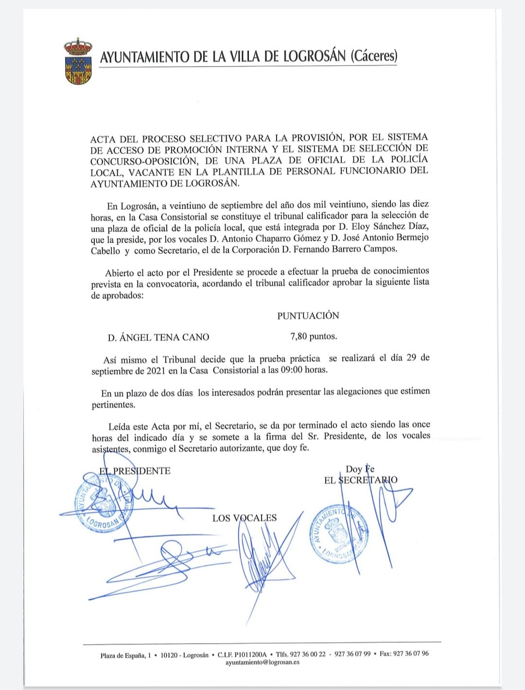 Acta del Proceso Selectivo para la provisión de una plaza de oficial de la policía local, vacante en la platilla de pero al funcionario del Ayuntamiento de Logrosán Documentos 241847215_3075542839329324_1325905157830380128_n.jpg (jpg 48,1 kB)242348665_3079075175642757_8393745076604738965_n.jpg (jpg 137,4 kB)243170806_3085416355008639_2747497789333056014_n.jpg (jpg 243 kB)